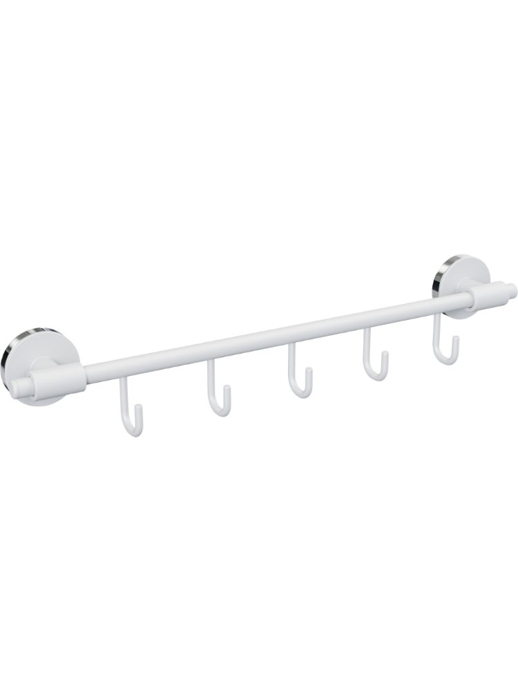 Минимализм и функциональность для вашей ванной комнаты — надежный держатель для полотенца с пятью крючками обеспечит аккуратное хранение текстиля и аксессуаров, добавив уюта и порядка. Белое исполнение с декоративными кольцами гармонично впишется в любой стиль интерьера, от классики до современности. Длина планки 40 см позволяет удобно разместить крупные полотенца, а пять отдельных крючков — персональные для каждого члена семьи или для гостевых мелочей.