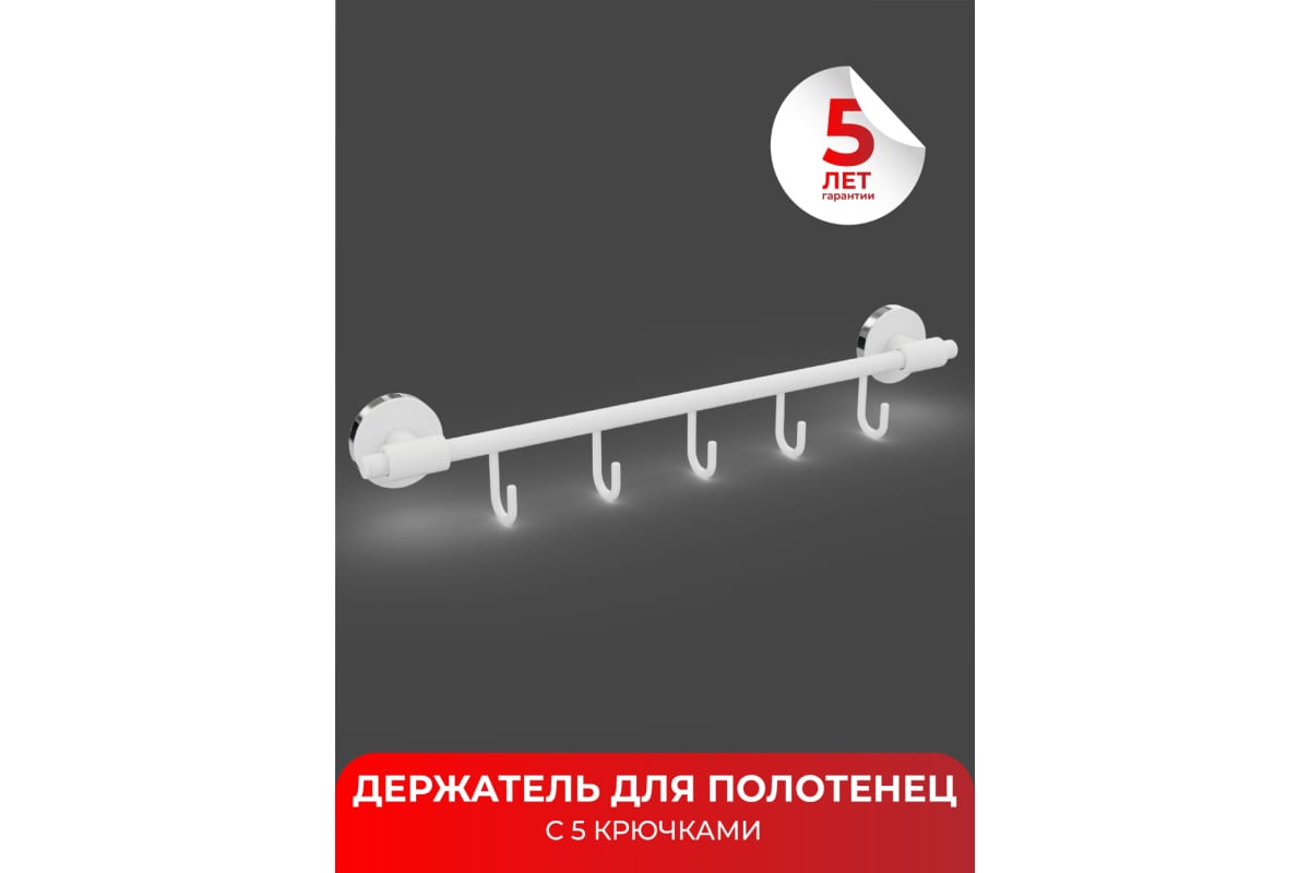Держатель д/полотенца 40см 5 крючков, белый, декор.кольца "Fora Lord" LORD049WT в Комсомольск-на-Амуре