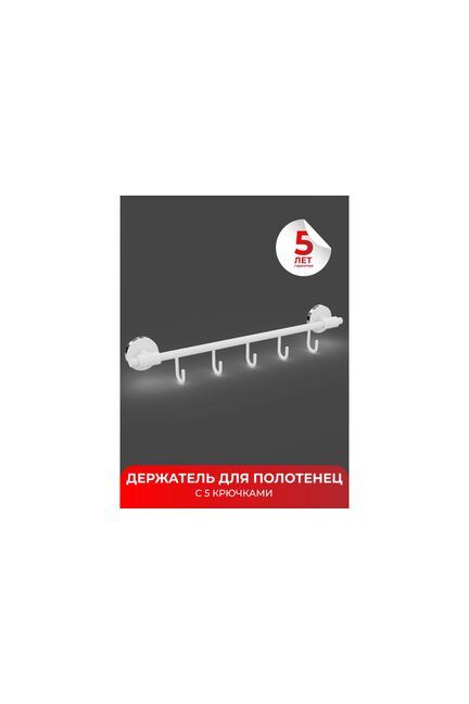 Держатель д/полотенца 40см 5 крючков, белый, декор.кольца "Fora Lord" LORD049WT