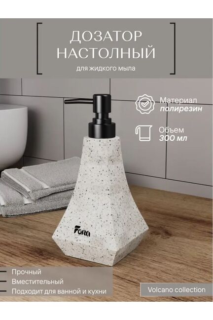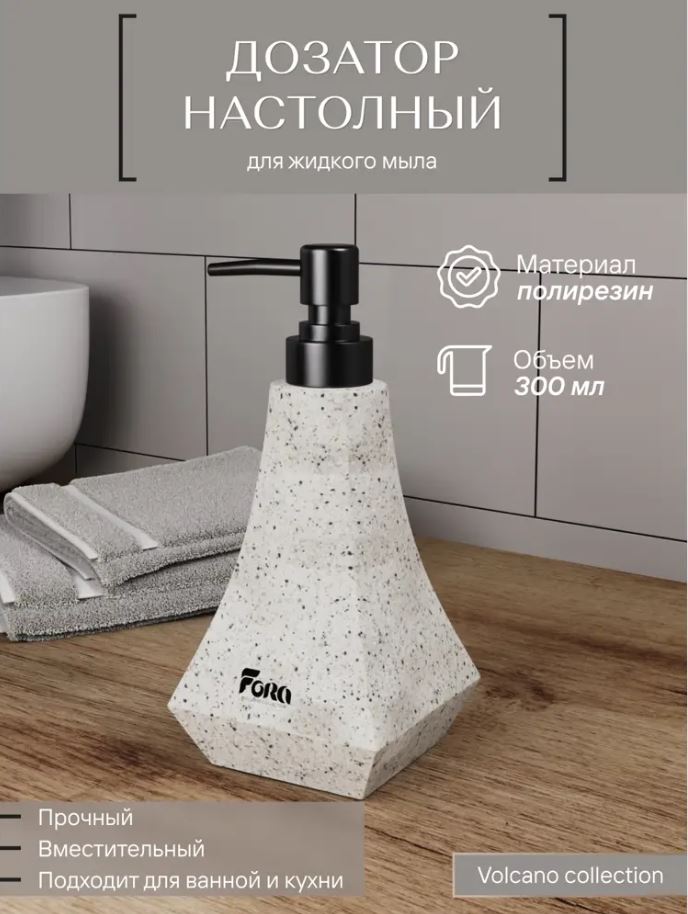 Дозатор д/жидкого мыла 300мл, полирезин, серый "Fora Volcano" VOL021