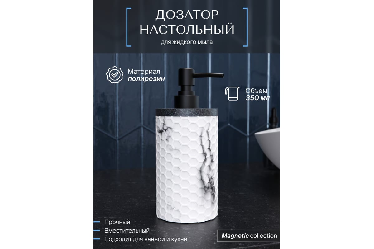 Дозатор д/жидкого мыла 350мл, полирезин, белый/черный "Fora Magnetic" MGN021