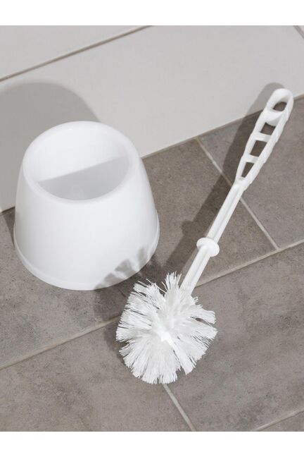 Универсальный белый ерш для унитаза с подставкой — компактный, легкий, влагоустойчивый, легко очищается и поддерживает чистоту санузла.