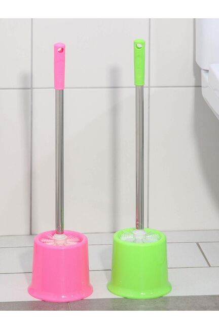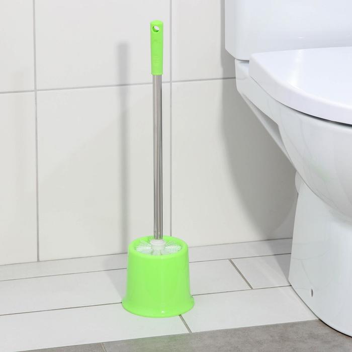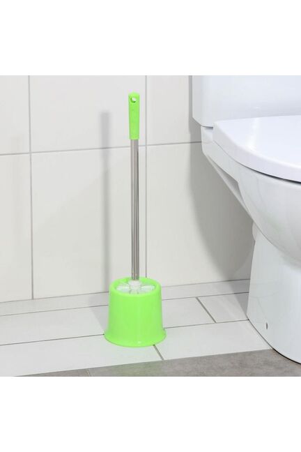 Эффективно очищает унитаз, изготовлен из прочного пластика, компактный размер, прочный ворс, подходит для частого использования.