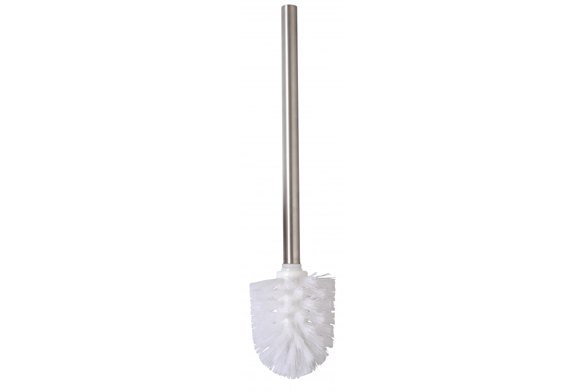 Прочный металлический ёрш с белой износостойкой щетиной для эффективной очистки сантехники и удобного использования в любой уборной.