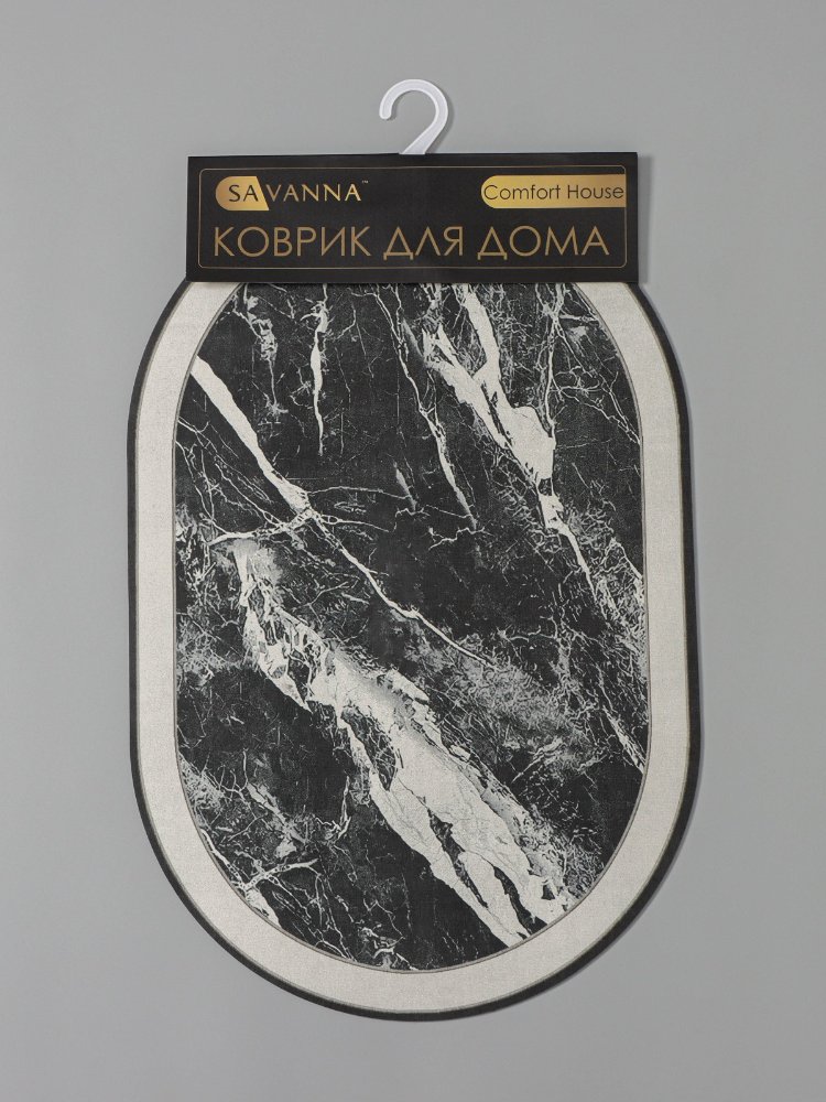 Эффектный аксессуар для вашей ванной: стильная черная расцветка с мраморным рисунком придает помещению элегантность и современность, а универсальный размер 38×58 см идеально подойдет для стандартных ванных комнат и душевых зон.