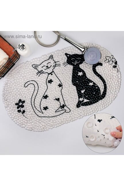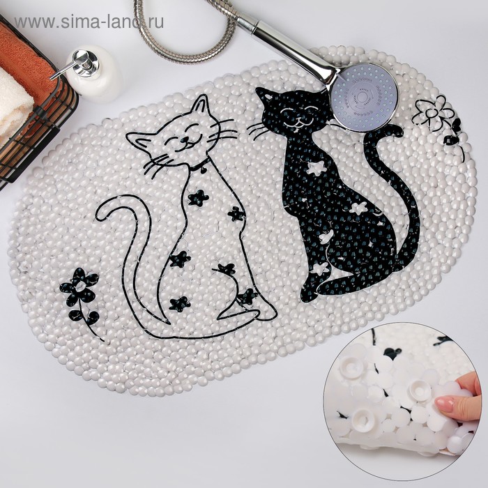 Коврик для ванной 65х39 см с дизайном "Кошечки" из ПВХ. Противоскользящий, влагоустойчивый, легко моется. Создает уют и обеспечивает безопасность.