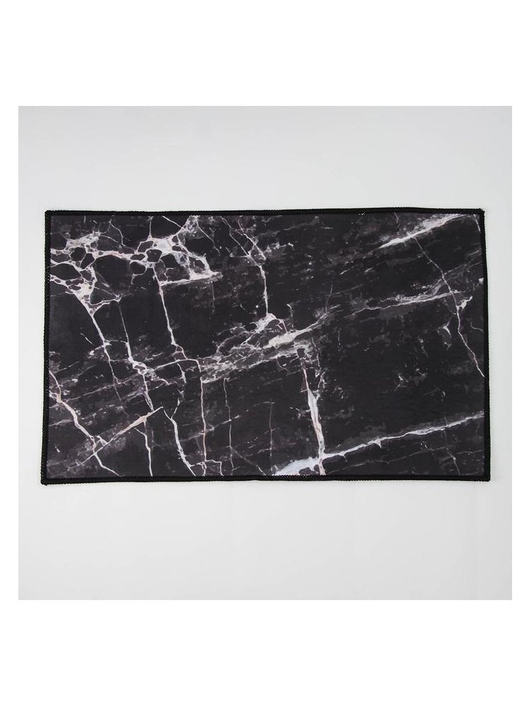 Состав: ПВХ, полиэстр. Цвет: черный. Тип ворса: с коротким ворсом/гладкие. Противоскользящий коврик 50×80 см с водоотталкивающей поверхностью и стильным мраморным дизайном для безопасной и уютной ванной.