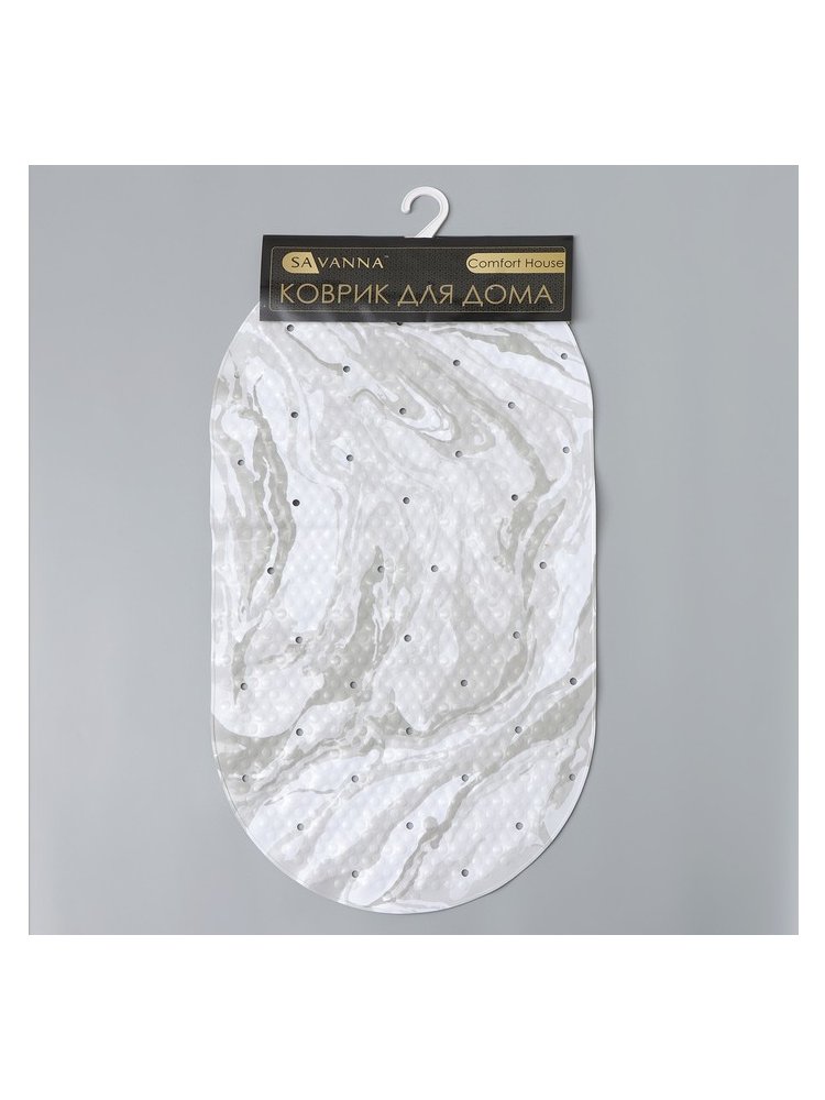 Состав: ПВХ. Цвет: серый. Форма: овальная. На присосках. Стильный коврик 38×68 см с мраморным дизайном, антискользящим покрытием и присосками для вашей безопасности и уюта в ванной.