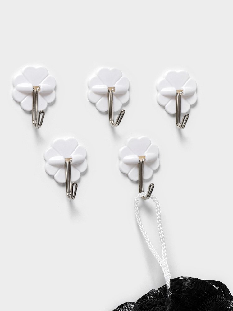 - Набор из 5 компактных пластиковых крючков выдерживает легкие нагрузки до 1 кг каждый