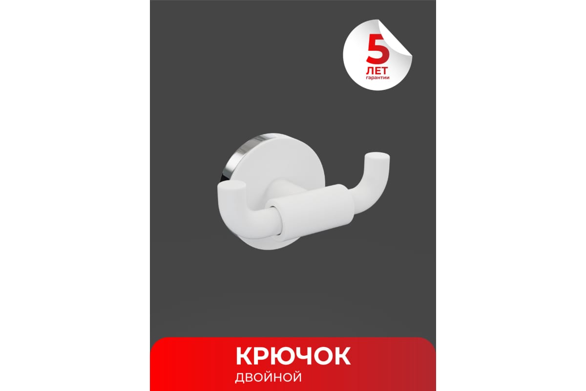 Крючок двойной, белый, декор.кольца "Fora Lord" LORD053WT
