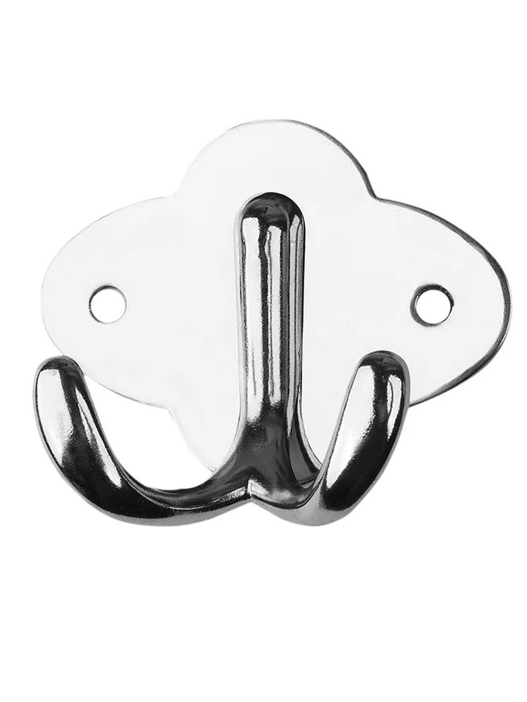 Хромированный двойной крючок для полотенец и одежды, устойчив к влаге и коррозии, легкий монтаж, компактный и практичный аксессуар для дома.