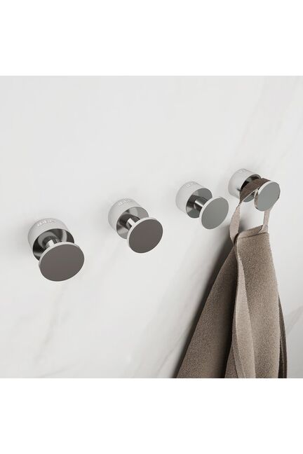 Набор из 4 прочных крючков с хромированным покрытием устойчив к влаге и царапинам, легко монтируется и подходит для разных помещений.