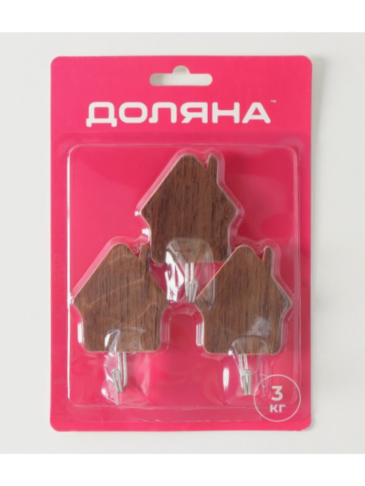 Крючок на липучке "Деревянные домики", 3 шт, цвет темное дерево 4587445