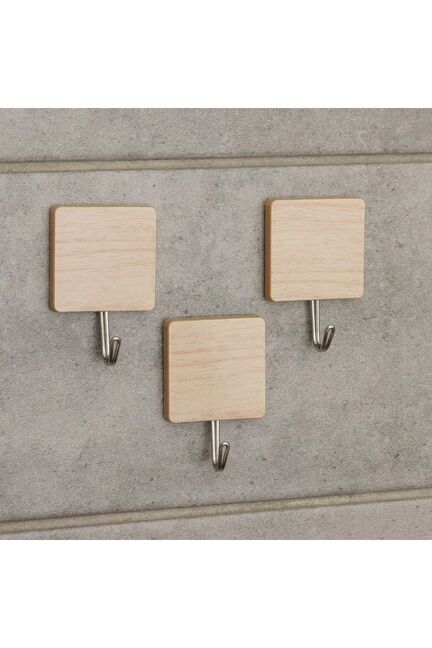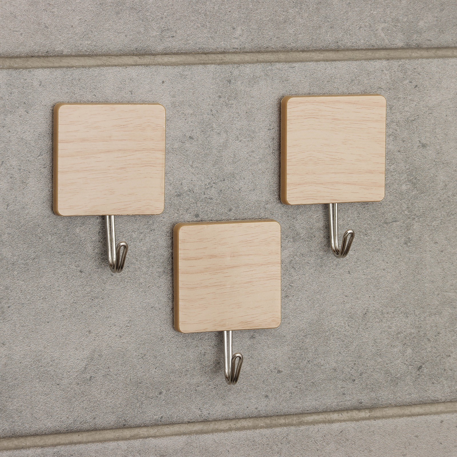 Крючок на липучке «Деревянные квадраты», 3 шт, цвет светлое дерево 4587444