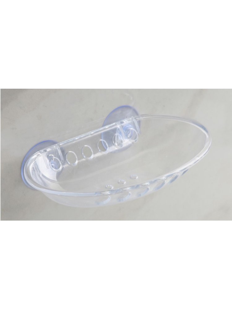 Компактная мыльница с присоской для надежного крепления, обеспечивает быстрый отвод воды и экономит место в ванной или рабочей зоне.