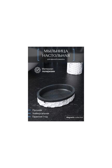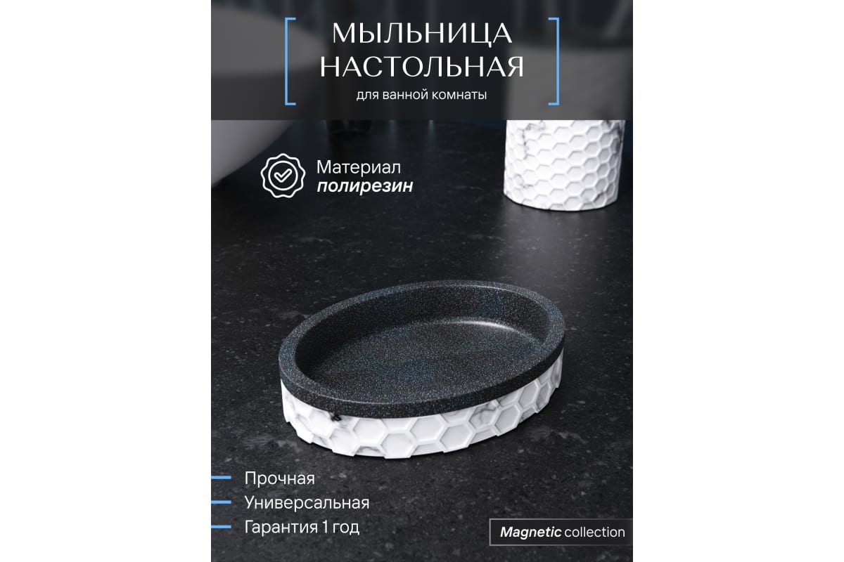 Мыльница настольная, полирезин, белая/черная "Fora Magnetic" MGN036 в Комсомольск-на-Амуре
