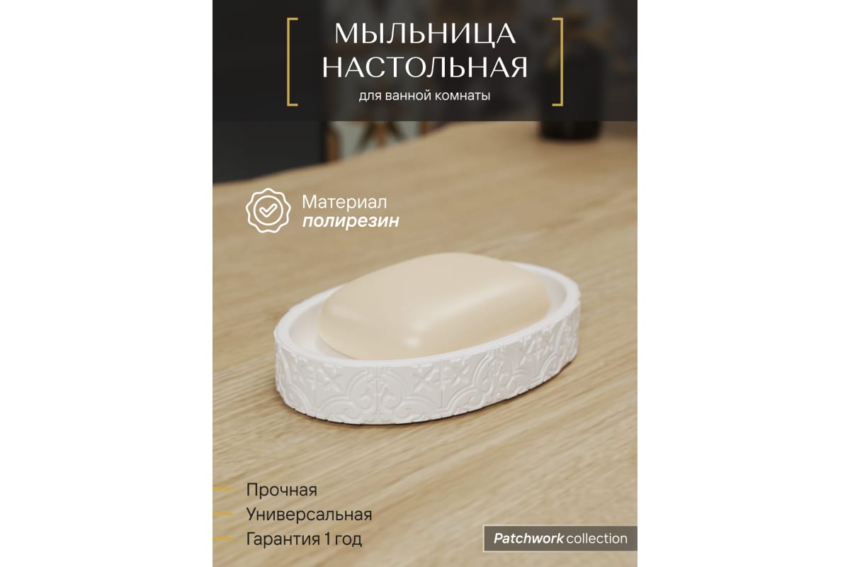 Мыльница настольная, полирезин, белая "Fora PatchWork" PCH036 в Комсомольск-на-Амуре