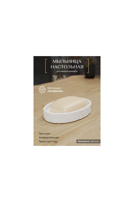 Мыльница настольная, полирезин, белая "Fora PatchWork" PCH036