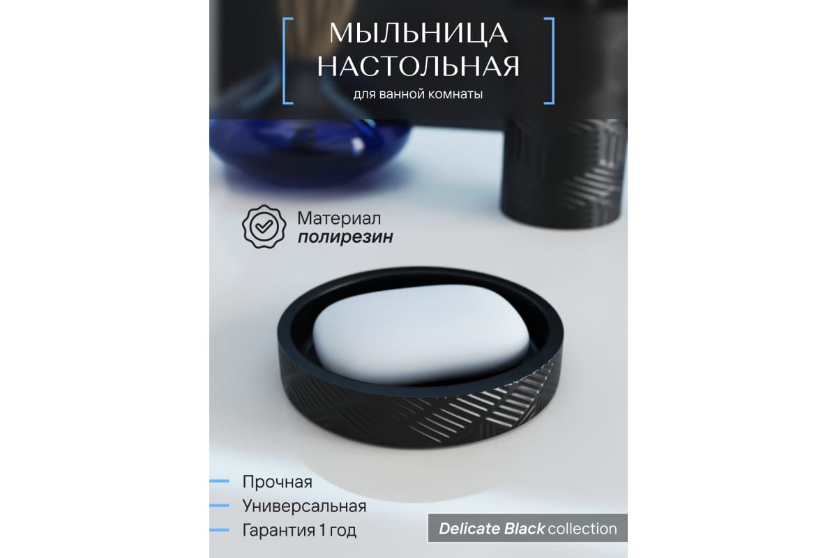 Мыльница настольная, полирезин, черная "Fora Delicate Black" DLB036
