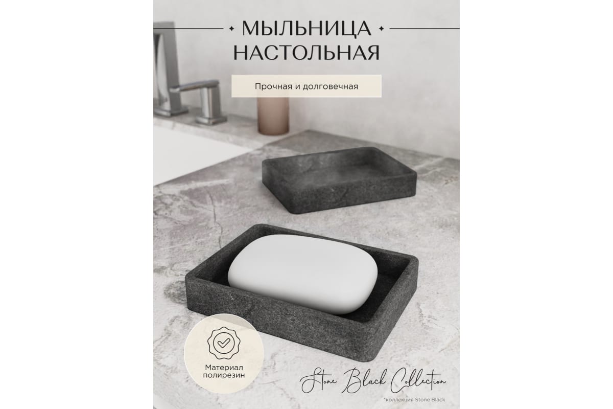 Мыльница настольная, полирезин, черная "Fora Stone Black" STN36BL