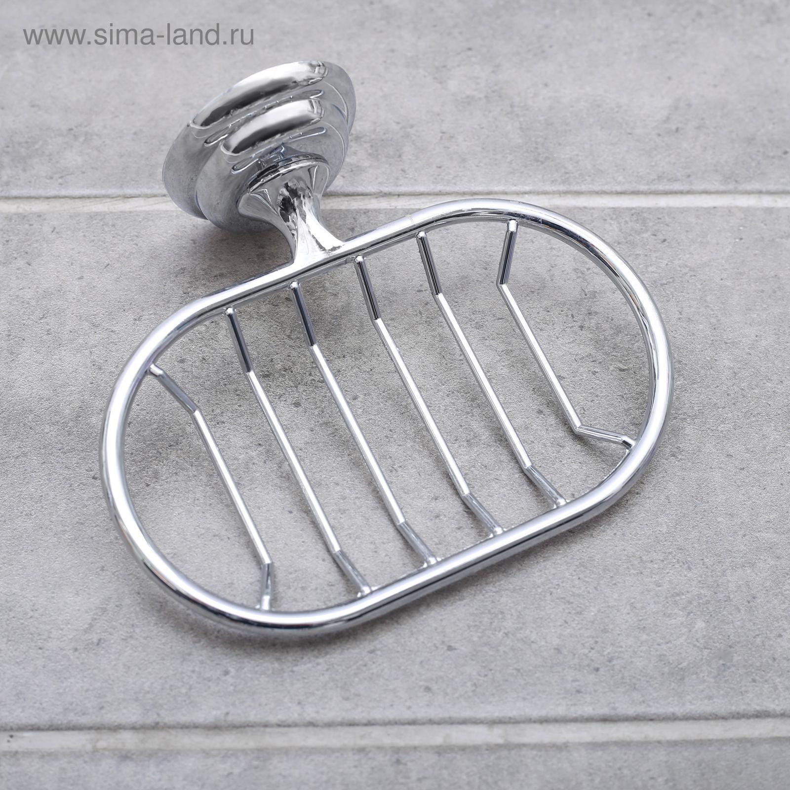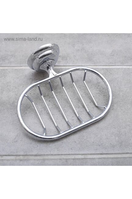 Компактная настенная мыльница-решетка из хромированного металла: защищена от ржавчины, экономит место и способствует быстрому высыханию мыла.