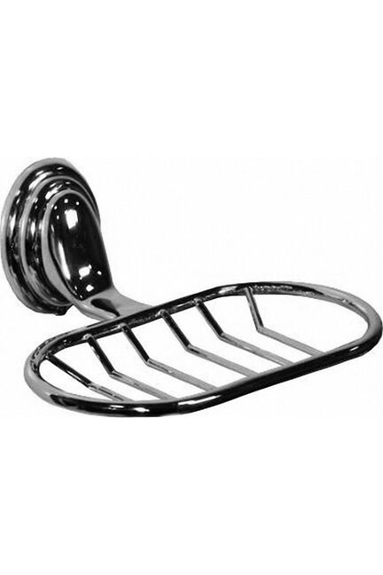 Овальная металлическая мыльница с хромированием, устойчива к коррозии, сетка обеспечивает быстрое высыхание мыла и предотвращает скольжение.
