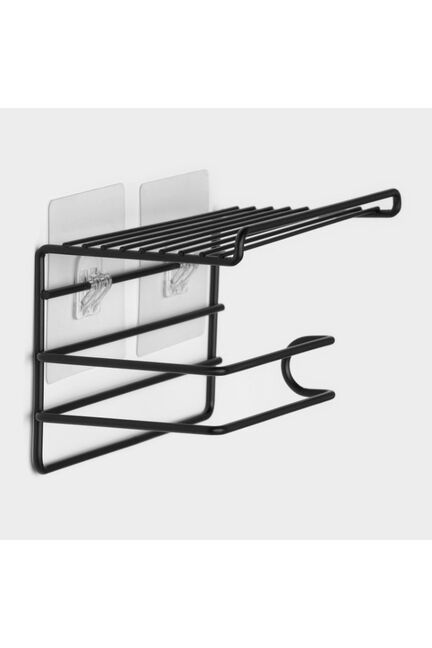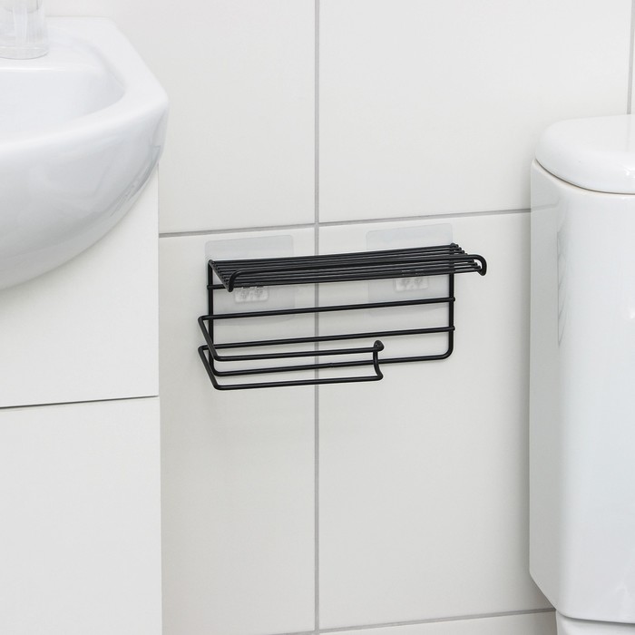 Держатель д/т бумаги с полочкой на липучке 20*10*8 см, цвет черный 10435027