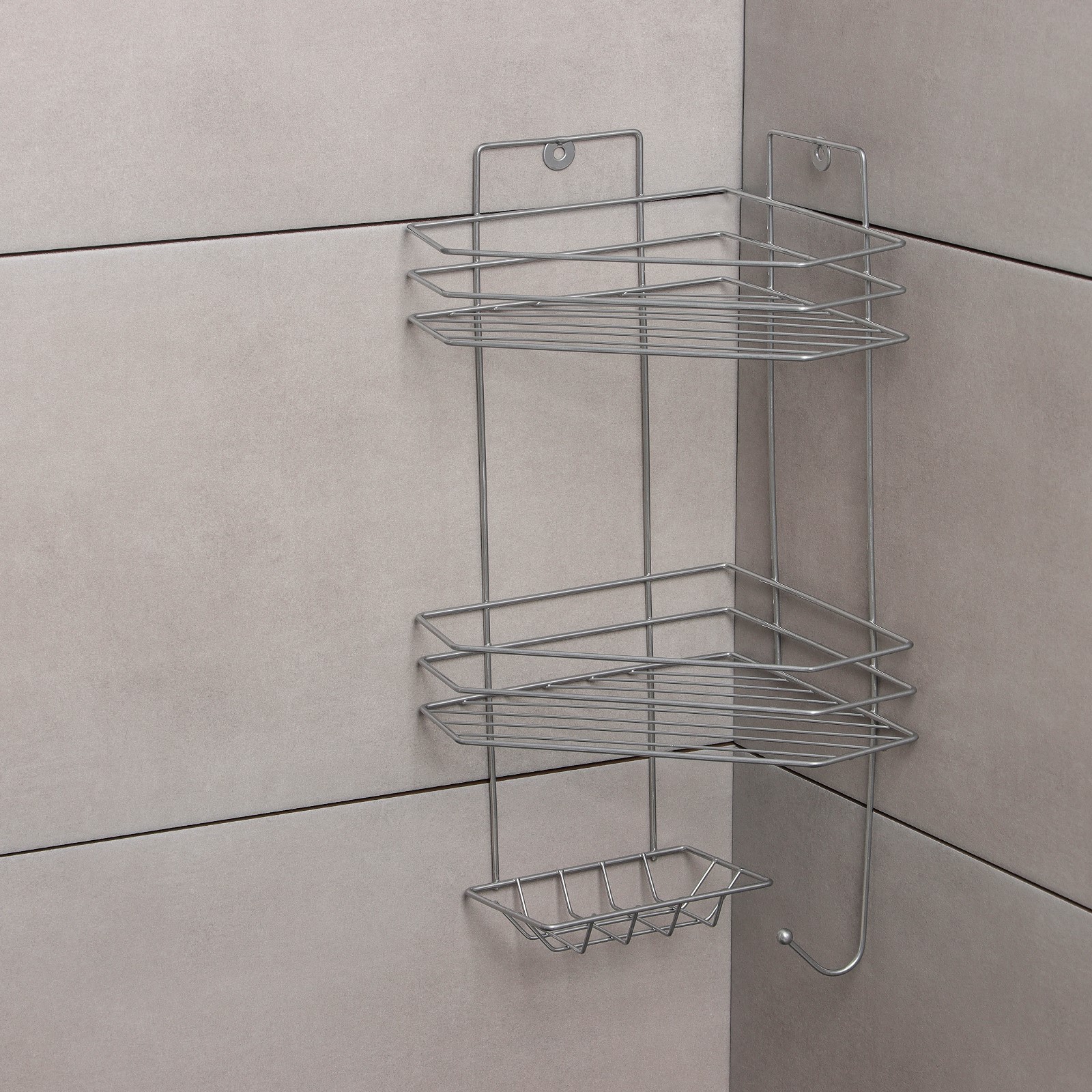 Угловая двухъярусная полка с мыльницей и вешалкой, хром, с  антикоррозийным покрытием, для ванной – удобное хранение, экономит место.