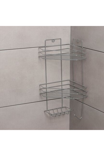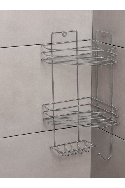 Полка 2-ярусная угловая с мыльницей и вешалкой, 25,5*42,5 см, хром 3277490