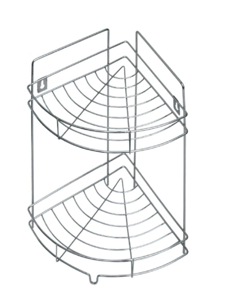 Универсальная полка металлическая ,сетчатая. Изготовлена из сплавов металлов/ цинк, медь, алюминий/ и обработана 5 слоями полировки, в результате чего устойчива к влаге и защищена от ржавчины и других повреждений. Двухъярусная угловая хромированная полка – компактное и устойчивое решение для хранения в ванной или кухне, устойчива к коррозии.