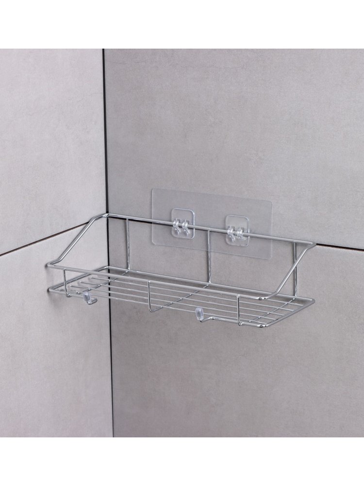Идеальное решение для экономии пространства в ванной или на кухне! Полка хромированная на липучке — простая и надежная организация хранения мелочей без сверления стен.