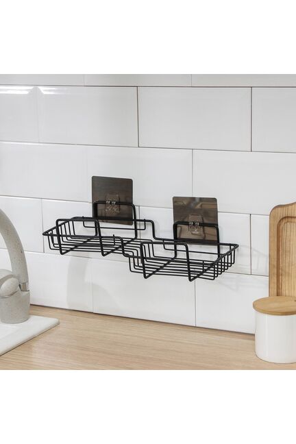 Многофункциональная полка на присосках 31×11×6 см, черная, прочная и влагостойкая, быстро крепится без сверления, удобна для хранения.