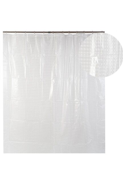 Прозрачная штора для ванной 3D-139 с узором мелкий квадрат, размер 1,8х1,8 м. Устойчива к влаге и плесени, легко устанавливается, в комплекте кольца.