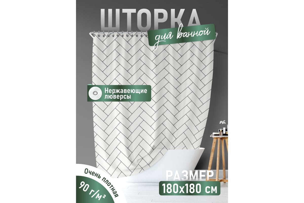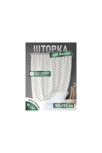 Белая полиэстеровая штора 180×180 см защитит ванную от воды, проста в уходе, прочная, быстро сохнет и подходит для любого интерьера.