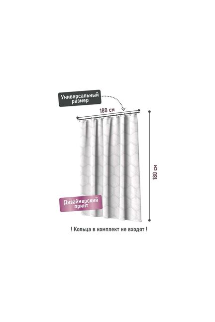 Надежная штора из влагостойкого полиэстера 180×180 см защищает ванную от брызг, устойчива к плесени, подходит для любого интерьера.