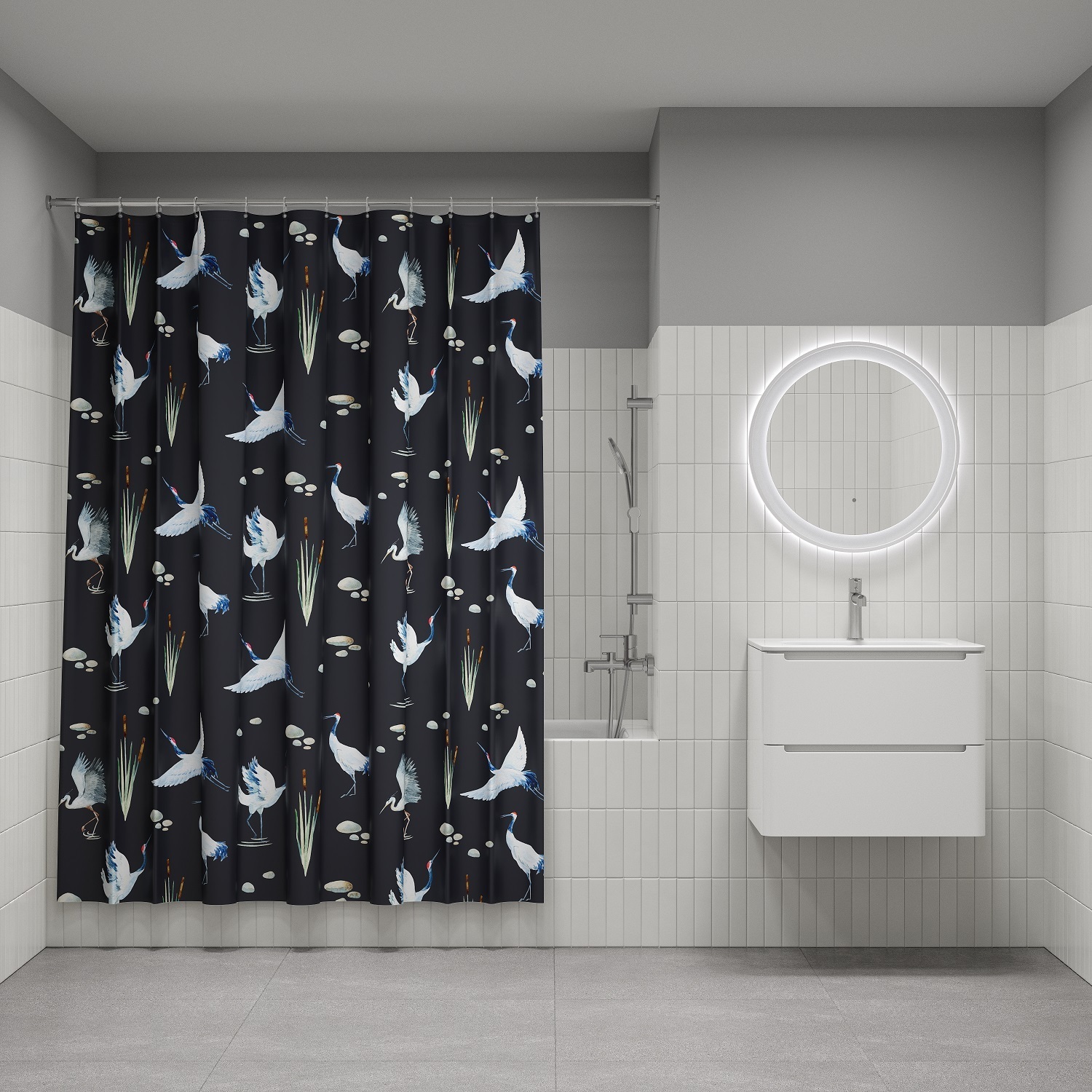 Гарантия: 1 год В комплекте 12 колец С-формы из прозрачного пластика Прочная штора из полиэстера 200×180 см защищает ванную от влаги, быстро сохнет, легко чистится и подходит к любому интерьеру.