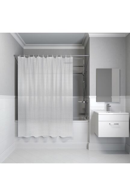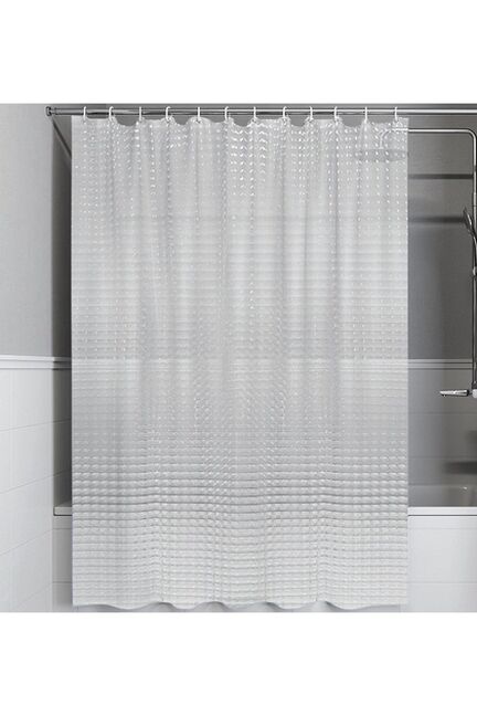 Прозрачная штора 200×180 см, экологичный PEVA, устойчива к воде и плесени, быстро сохнет, легко чистится и подходит для любых ванных комнат.