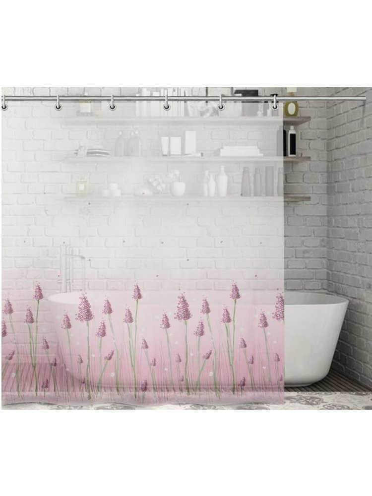 Освежите вашу ванную комнату стильной и функциональной занавеской с изысканным лавандовым мотивом — практичное решение для защиты от брызг и создания уюта.