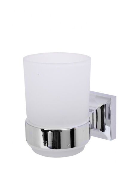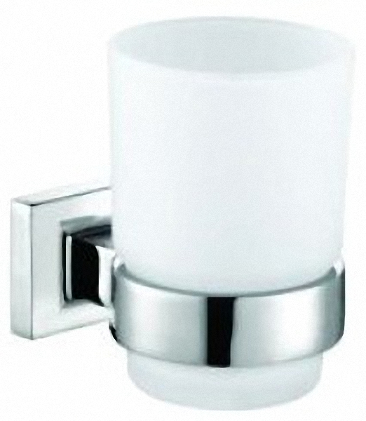 Настенный одинарный стакан с держателем из матового стекла и хромированного металла для компактного и стильного хранения зубной щетки.