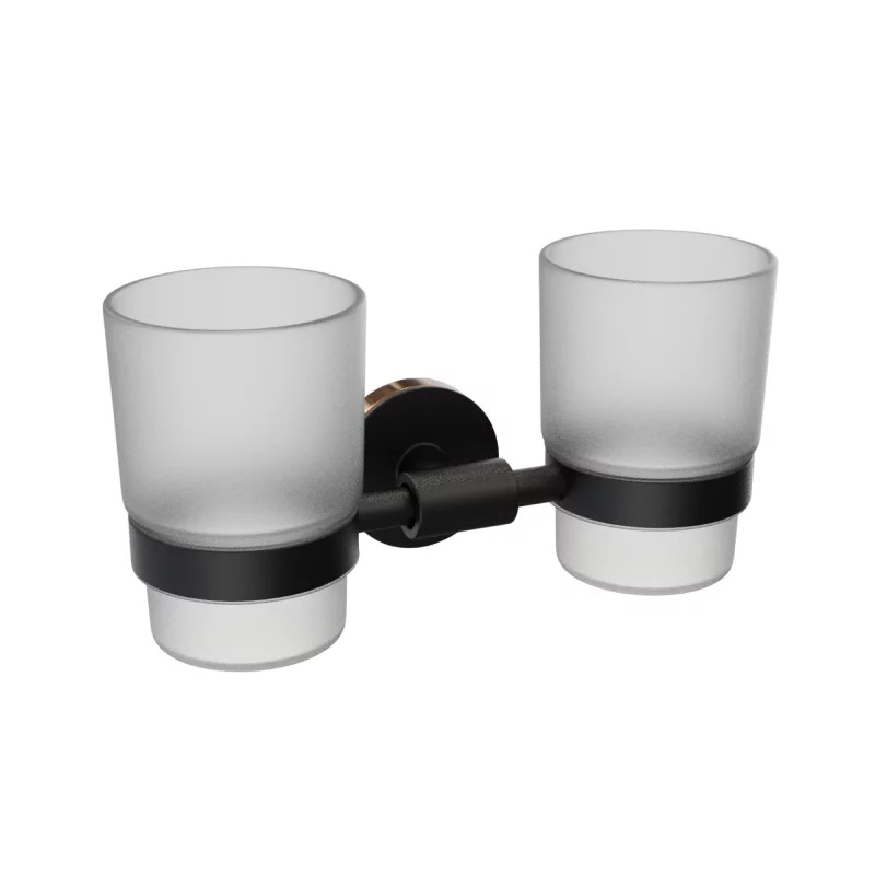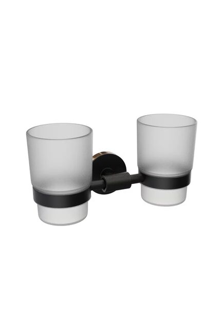 Тип крепления: Со сверлением Материал: Нержавеющая сталь Материал емкости: Стекло матовое Цвет: Черный ДxШxВ: 190x68x96 мм Эксклюзивный элемент коллекции"LORD" FORA – декоративные кольца, которые можно менять в зависимости от дизайна помещения. Хромовое или золотое кольцо идеально сочетаются с металлическими элементами сантехники. Настенный двойной стакан из матового стекла с черными декоративными элементами — для компактного хранения щеток и аксессуаров в ванной.