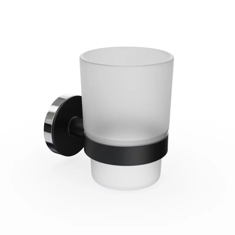 Матовый стеклянный стакан на стену с черным держателем, устойчив к влаге и коррозии, компактный, легко моется, подходит для ванной и туалета.