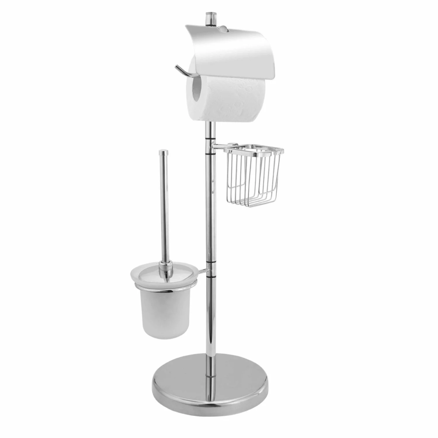 Стойка напольная поворотная 3в1: держатель д/т бумаги и освежителя, ерш д/унитаза стеклянный "Fora"
