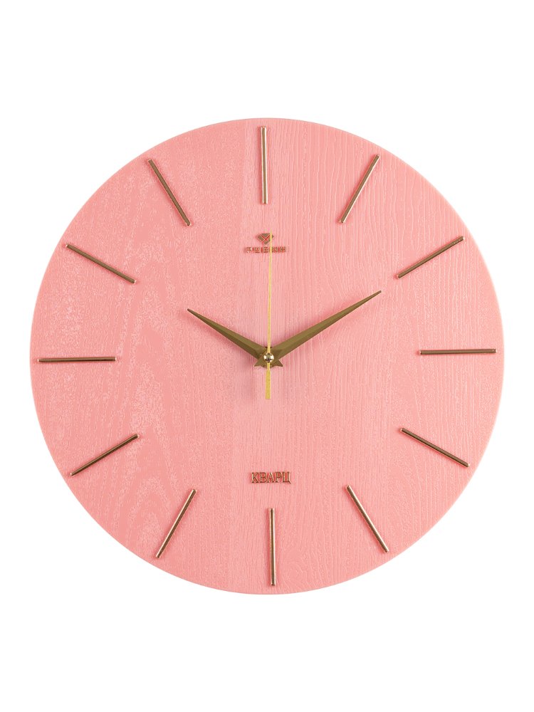 Элегантные настенные часы диаметром 30 см органично впишутся в любой интерьер офиса, дома или мастерской. Благодаря гармоничному сочетанию корпуса кораллового цвета с золотыми деталями, они не только показывают точное время, но и становятся стильным акцентом в помещении.