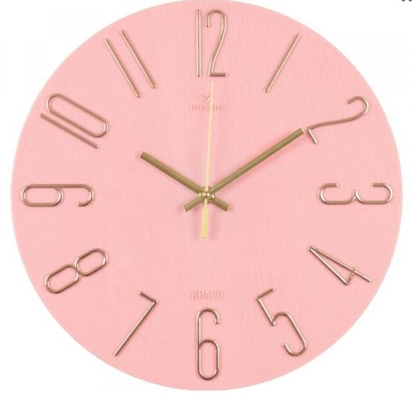 Элегантные настенные часы d=30 см с коралловым и золотым корпусом, кварцевый механизм, четкий циферблат для дома, офиса или мастерской.