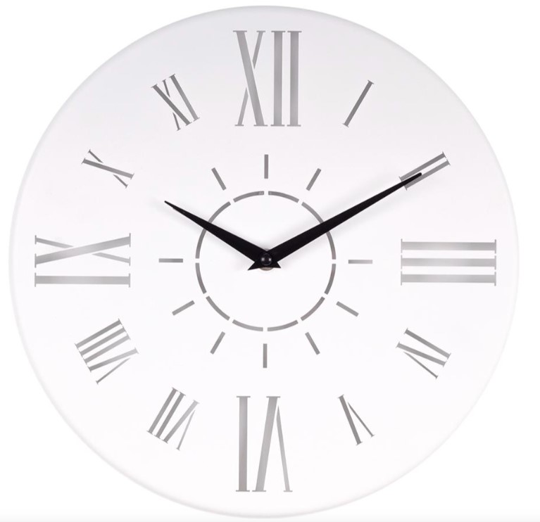 Стильные часы диаметр - 32 см, белый корпус, бесшумный механизм, чёткий циферблат, легко крепятся — идеальный вариант для дома, офиса или мастерской.