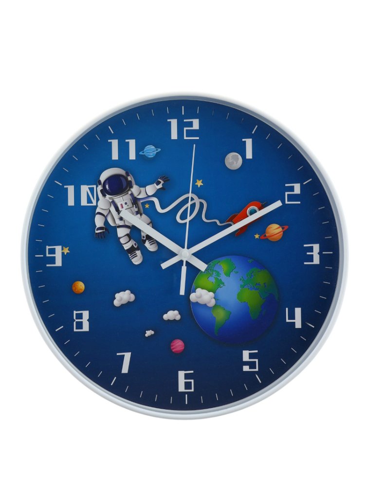 Подарите детской комнате атмосферу увлекательных космических приключений с этими настенными часами. Яркий иллюстрированный циферблат мотивирует ребёнка учиться определять время, превращая каждое мгновение в игру. Эти часы помогут организовать распорядок дня и создать в интерьере гармоничное, современное пространство.