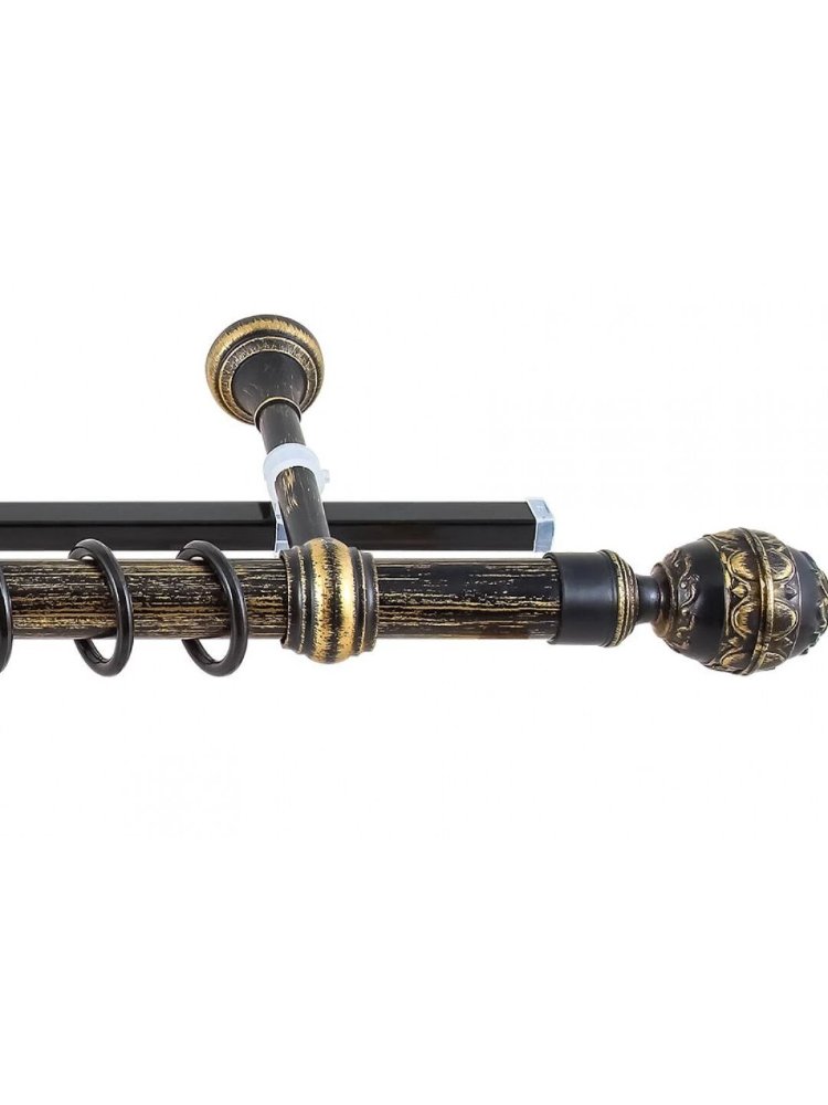 Двухрядная металлическая конструкция 2 м с черной патиной и золотом, выдерживает тяжелые шторы, подходит для любого стиля интерьера.