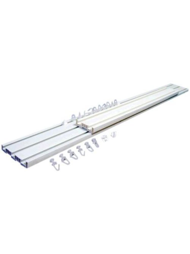 Комплектующие к карнизу: ПВХ-шина 2-х или 3-х полозная, крючки роликовые, стопоры. Карниз имеет индивидуальную упаковку Двухрядный карниз 3 м для штор и тюля, долговечный, устойчивый к влаге, легко устанавливается и подходит для любых интерьеров.