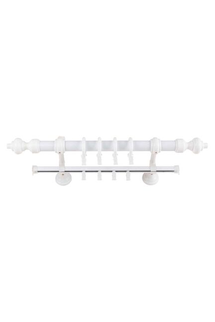 Особенностью карниза «Ретро» является фигурный кронштейн, который обеспечивает более удобное и надежное крепление трубы и шины, а также упрощает эксплуатацию - снять шторы с карниза «Ретро» очень легко. Комплектующие: стальная ламинированная труба d-28 мм, стальная шина, пластиковая фурнитура (кронштейны, кольца, крючки, наконечники), дюбели, саморезы. Карниз имеет индивидуальную упаковку. Двухрядный круглый карниз 2 м белый, металл, для тюля и штор, стиль ретро, прочный, универсален для стенового и потолочного крепления.