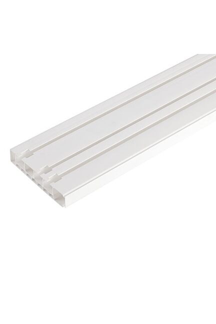 Комплектующие к карнизу: ПВХ-шина 2-х или 3-х полозная, крючки роликовые, стопоры. Карниз имеет индивидуальную упаковку Практичный потолочный карниз 3 м, три ряда, из износостойкого пластика, для комбинированного размещения штор и тюля. Комплект для легкой установки.